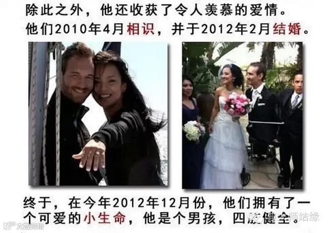 尼克在演说中曾表示盼望将来能找到一个神所为他预备的妻子,如今他的美梦实现了,对很多粉丝来说,这是一个很大的鼓舞,也是情人节前夕一份独特的礼物。当“无肢勇士”尼克喜得贵子的喜讯传开后,全球粉丝纷纷为他送上诚挚祝福。
