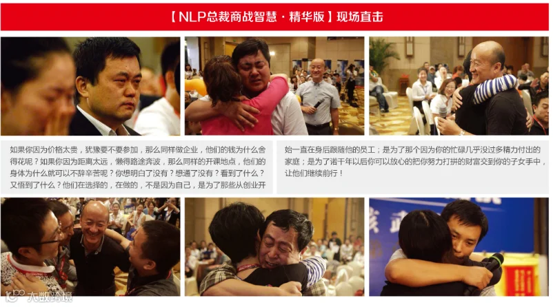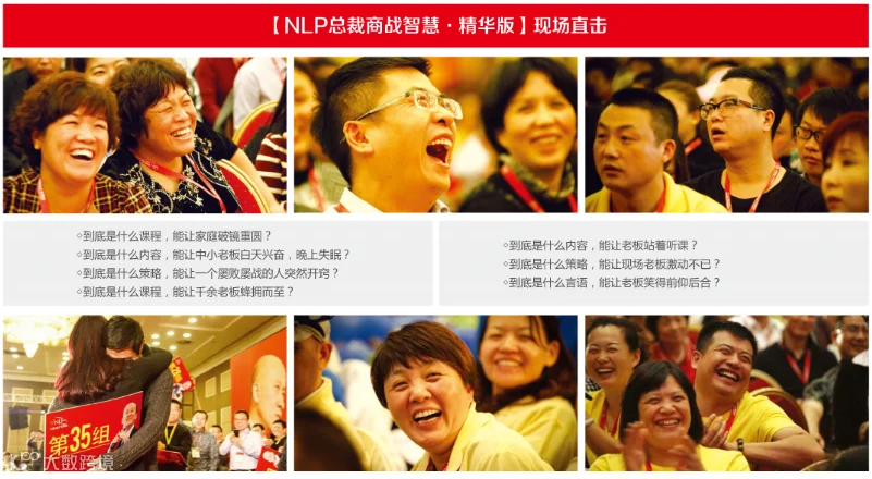 《NLP商战智慧》系列课程把NLP心理学原理应用于商战,从根源上解决人的问题,进而解决企业问题。都是运用冯晓强自己的案例,课程中含有大量实战、落地的方法,简单实用,拿回去就能用,用了就有效。让中小企业老板实现业绩暴涨,身心解放,不但要赚钱,还要从企业中解脱出来。