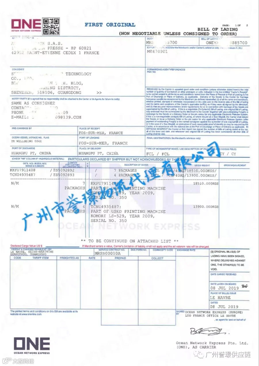 誉璟物流专业从事二手机电设备进口清关。专业办理海外二手印刷机进口物流、进口清关/通关、备案、中检,协助办理旧印刷机进口许可证(O证)等相关进口手续。曾为客户代理进口操作德国海德堡、罗兰、日本小森、樱井、三菱、高宝等知名品牌印刷机。全程安排专人跟进海外中检、海运拖车、门到门进口至国内厂家服务。