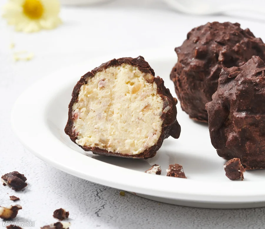 敲重点,这款巧克滋的榛子可可部分,为了突出法芙娜的风味,零代糖,怕苦的朋友要慎重,喜欢85%黑巧的,答应我一定不要错过。内部冰淇淋部分,代糖2%左右,只是激发了奶香和香草朗姆酒香,微微甜。