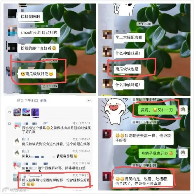 南瓜软软是一款模拟南瓜味的竹叶糕,是软糯吸溜一下的感觉,没有竹叶糕那么弹,没有糯米粉,形状不容易保存,脱膜发出后抵不住路上变形,就有了这个“黄泥”。