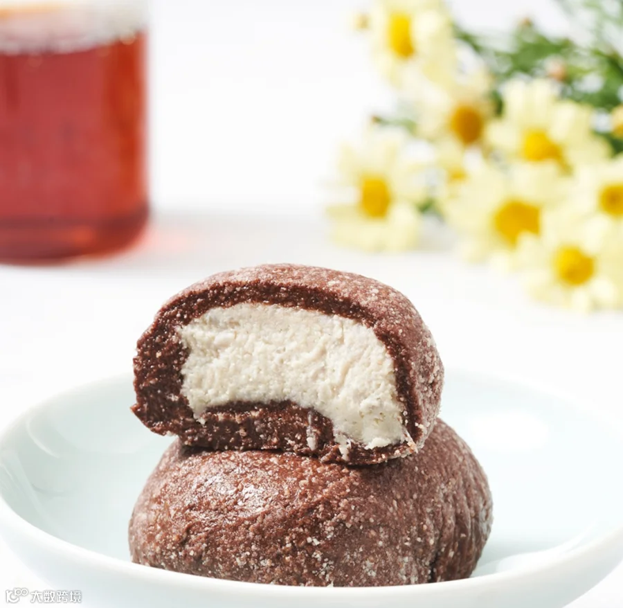 在我不了解它以前,仅仅觉得好吃,了解它以后,发现这个品种还有很多食疗功效,黏液蛋白和芋头多糖提高免疫力。但是100克芋头,碳水有15克左右,所以芋泥大福的设计中,用其他成分替换了部分芋头,碳水降到了70克,碳水在4克左右。之前内陷干的问题,已经调整过,是因为芋泥大福的外皮在运输过程中吸收了内馅的水分,这次芋泥大福的外皮已经调整。