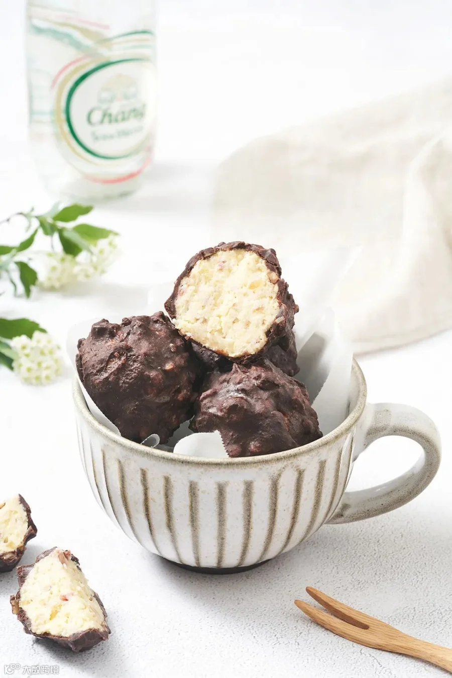 谁想,今日却用巧克力中的爱马仕—法芙娜自己动手做巧乐兹,外部巧克力部分搭配榛子碎,内部冰淇淋部分搭配香草荚泡的朗姆酒,一口下去香醇丝滑全部涌上来了,搭配一杯冰镇拿铁,美滋滋。