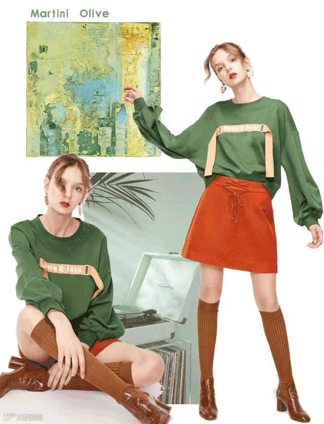 今年秋日的橄榄绿显深稳、内敛,在众多绿色之中脱颖而出,原因和近几年的流行色的原理一样:灰、饱和度偏低,就能打造一个稍显高级的颜色。