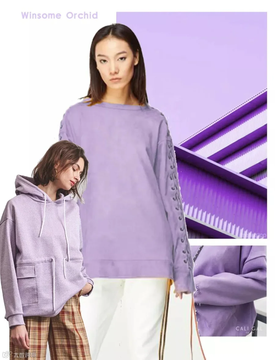 紫色在使用时款式要简单且有设计感,在本季和麂皮绒面料结合,以简洁大气为主。