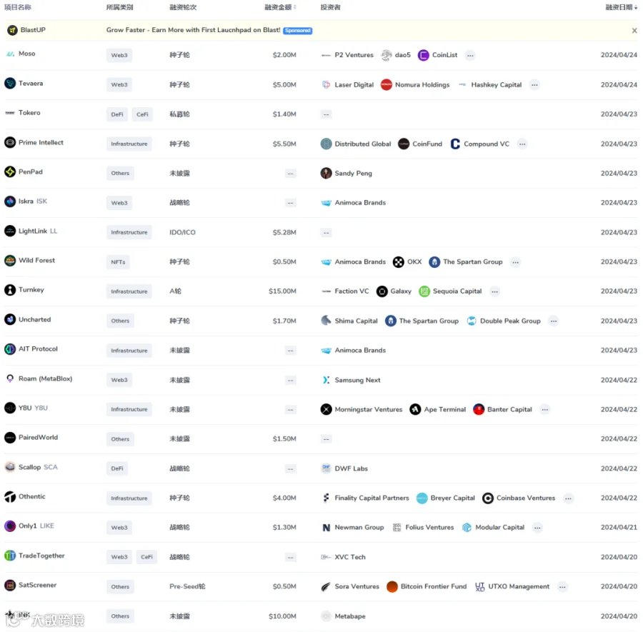 Movement Labs 宣布完成 3800 万美元 A 轮融资,Polychain Capital 领投,Hack VC、Placeholder、Archetype、Maven 11、Robot Ventures、Figment Capital、Nomad Capital、Bankless Ventures、OKX Ventures、dao5以及Aptos Labs参投。Movement L2是一个基于Move编程范式的以太坊Layer-2区块链。预计将于Q2季度上线测试网。