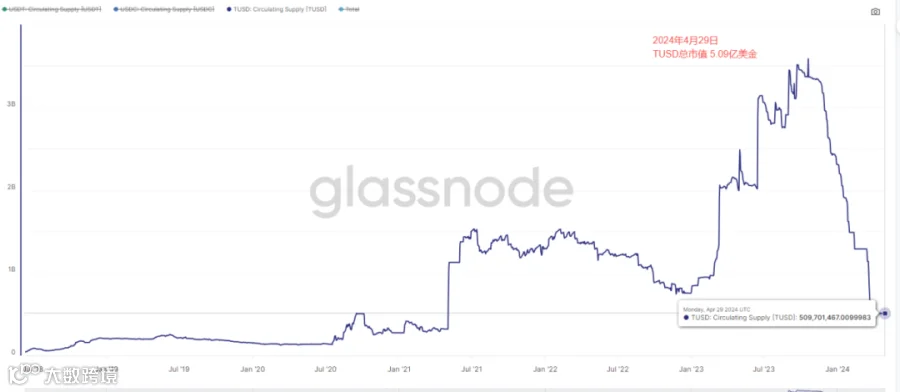 USDT市值继续保持增长状态,目前市值已达到1105.639亿美金市值,USDC总市值增加到335亿美金,TUSD市值维持在5亿美金左右。