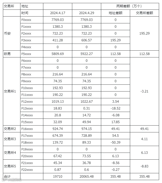 交易所地址:4 月 17 日到 4 月 29 日共流入355.48万个