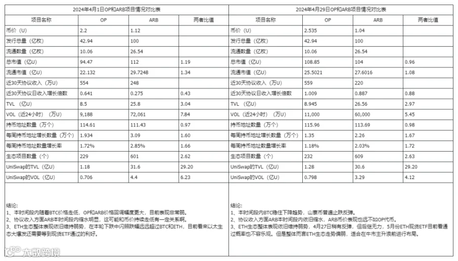 三、Optimism和Arbitrum数据对比分析