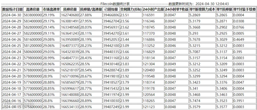 单日每T产币量: 0.0048FIL