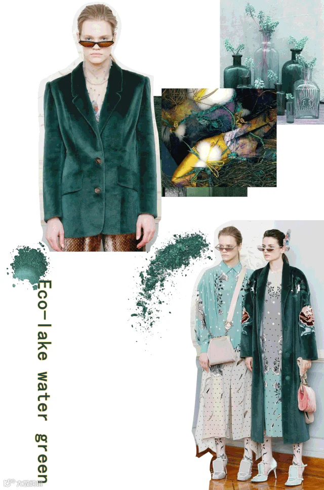 19/20秋冬的蓝绿色系呈现更加丰富层次的色感出来,蓝绿色系结构更加完整,其中最为突出的是浪漫的卡普里岛色,抢眼吸睛热带绿,以及浓郁的香脂蓝。