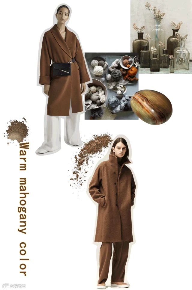 20/21秋冬的红木色,是棕色系更温暖的表现,低调沉稳同时又呼应了人气较高的暖色系。