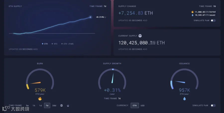 ii. 本周ETH主网呈现通胀,7天年通胀率为0.31%。