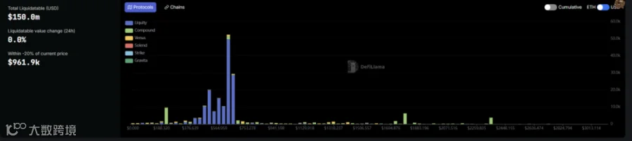 ii. 去中心化交易所方面,ETH在2353开始有大额清算,在659至376为密集清算区,627为最大清算点。