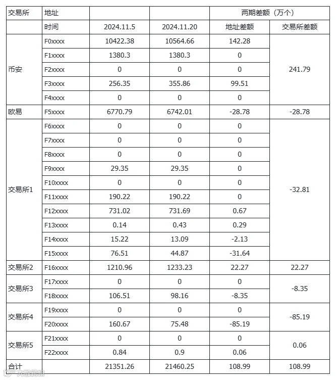 交易所地址:11 月 5 日到 11 月 10 日共流入109万个,流入量较大,谨防抛盘。