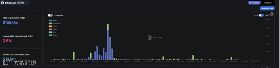 ii. 去中心化交易所方面,ETH在670开始有大额清算,在670至431为密集清算区,622为最大清算点。