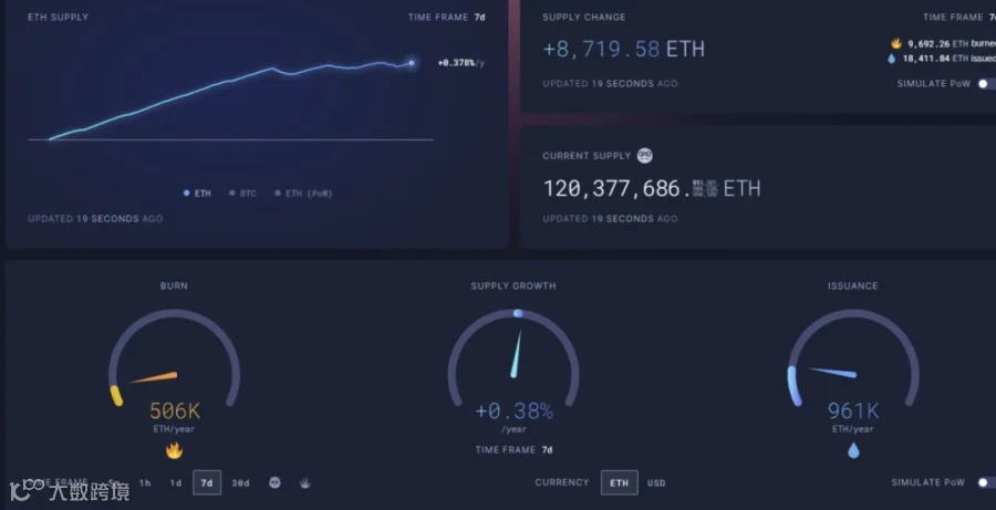 ii. 本周ETH主网呈现通胀,7天年通胀率为0.38%。