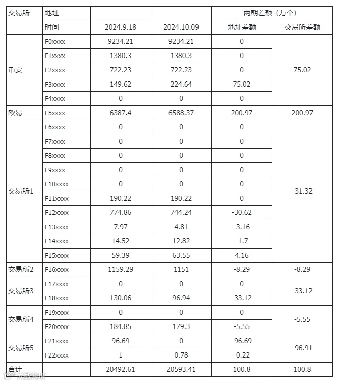 交易所地址:9 月 18 日到 10 月 9 日共流入100.8万个,流入量较大,谨防砸盘。