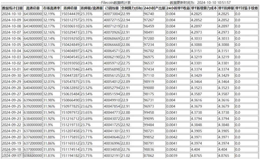 单日每T产币量:0.004FIL