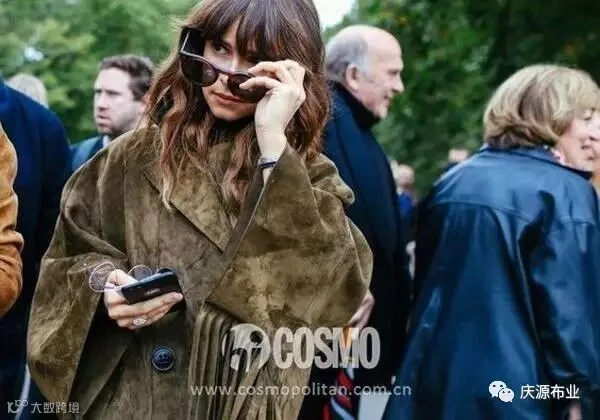 设计比较宽松的这种麂皮长外套,随便穿在身上就质感满满,和手拿的麂皮包在质地上也有呼应。