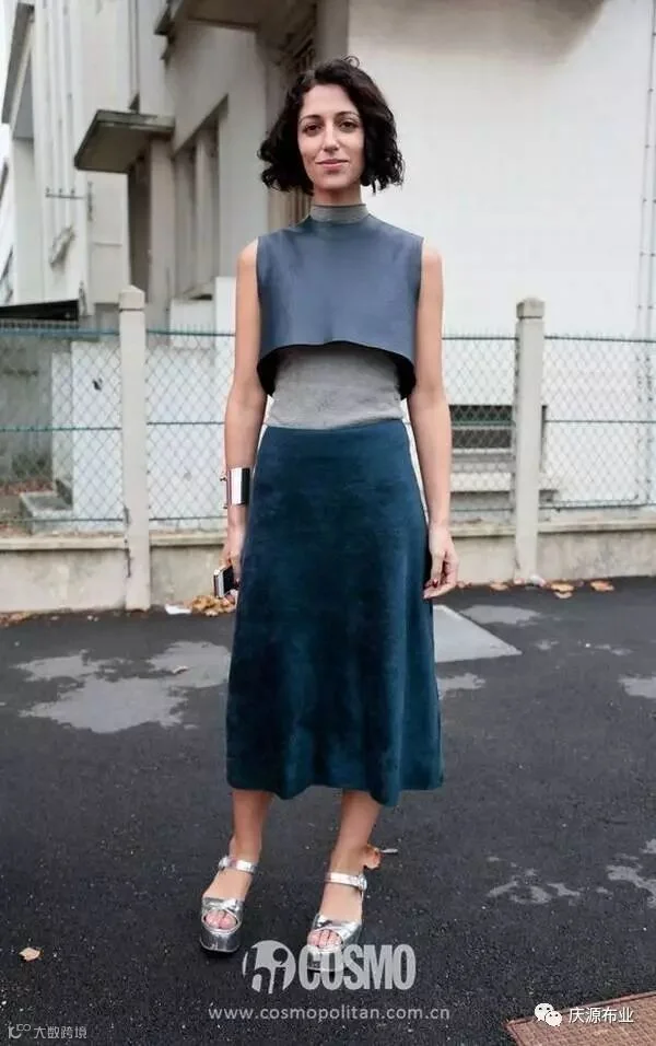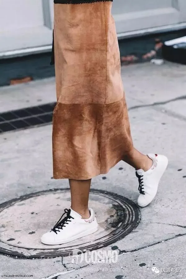 麂皮长裙搭配白球鞋,是不是有一种混搭突出复古味道的感觉?