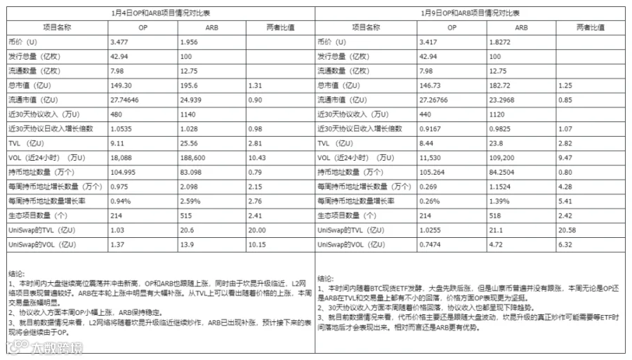 三、Optimism和Arbitrum数据对比分析