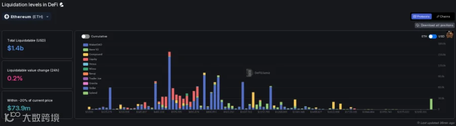 ii. 去中心化交易所方面,ETH在2259开始有大额清算,在922至345为密集清算区,530为最大清算点。