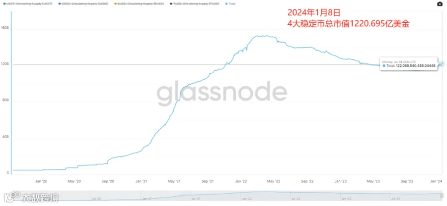 四大稳定币总市值1220.695亿美金,较上周的1201.55亿美元,再次增加约19亿美金,场外资金在圣诞和元旦后进场明显。