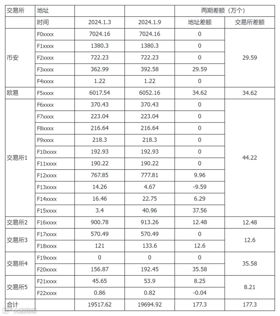 交易所地址:1 月 3 日到 1月 9 日共流进 177.3万个,流入增加。