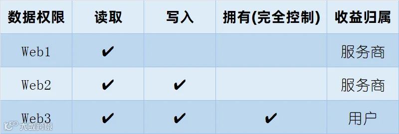 但是,在Web3时代,我们产生的数据都属于我们自己。我们可以选择把这些数据开放给平台或者给其他需要的商家,而且,开放出去的同时,我们可以获得相应的收益。当然,我们也可以选择不开放,对于卖或者不卖,我们自己能说了算。