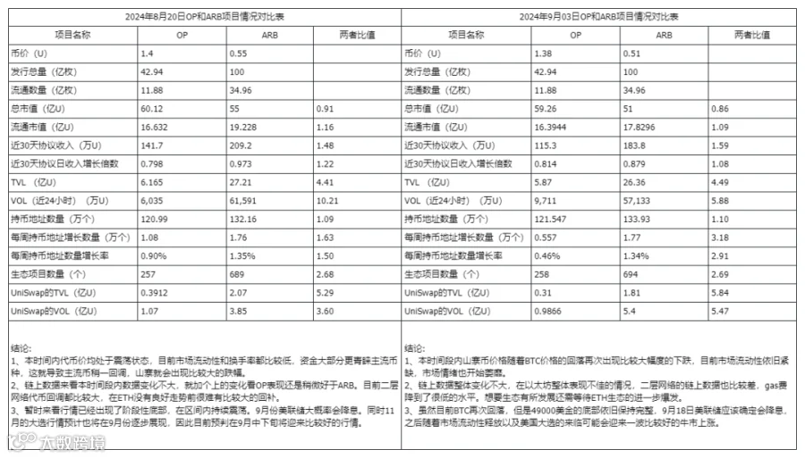 三、Optimism和Arbitrum数据对比分析