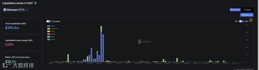 ii. 去中心化交易所方面,ETH在650开始有大额清算,在650至481为密集清算区,626为最大清算点。