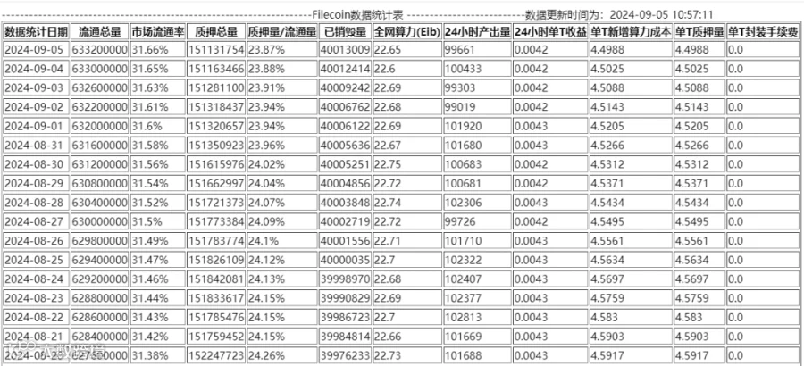 单日每T产币量: 0.0042FIL