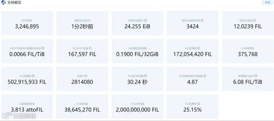 持币地址:目前持币地址数2,814,076(↑),相较上周增长 3606 地址,总计销毁量 38,645,270 FIL。