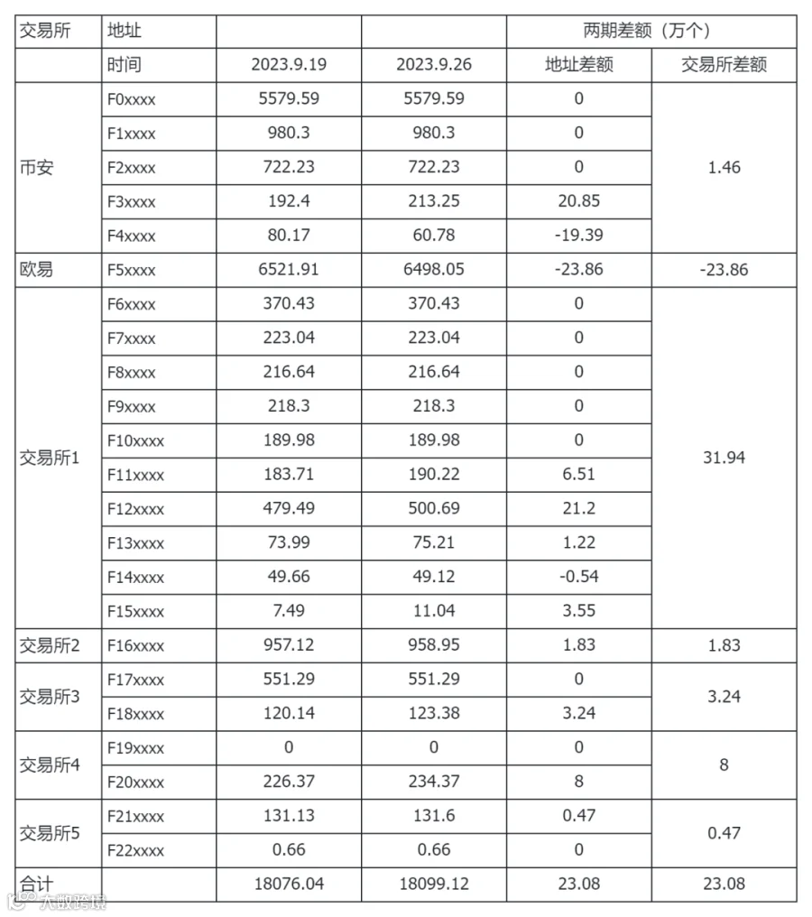 交易所地址:9 月 19 日到 9 月 26 日共流入 23.08 万个,交易所流进流出量较小,用户持币观望。