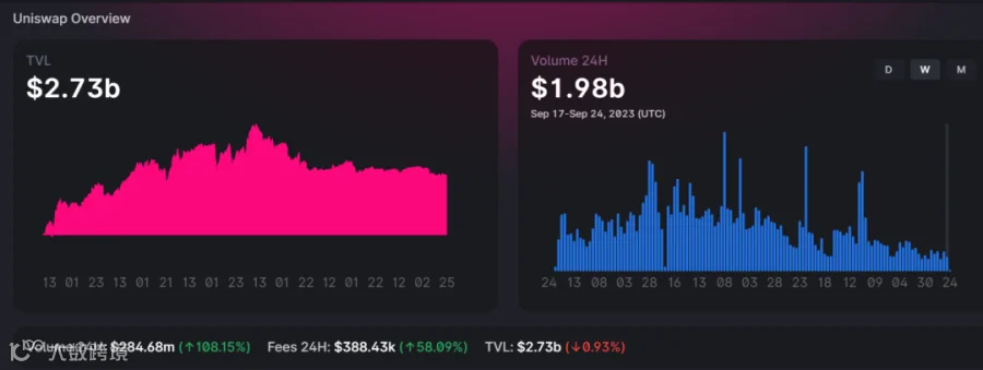 UniswapV3总TVL 27.3亿美金,较上周变动幅度小。
