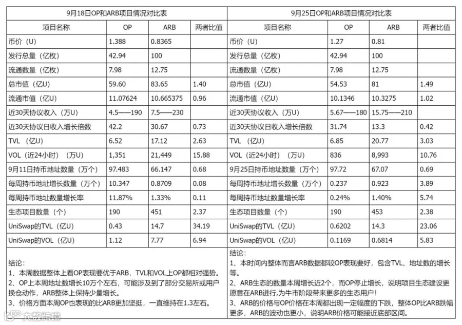 1. 数据上,ARB整体表现优于OP,包含TVL、地址数的增长等。