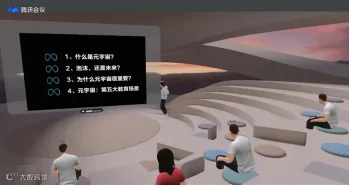 在元宇宙虚拟世界中,人们不仅可以实现足不出户就能通过增强现实技术进行远程工作,还可以以虚拟身份与在线空间的同事共享办公,将现实空间中的人物动作、神情和语气准确传达给同事,获得更加真实的沉浸式办公体验。