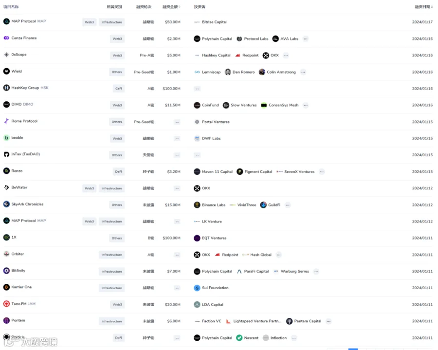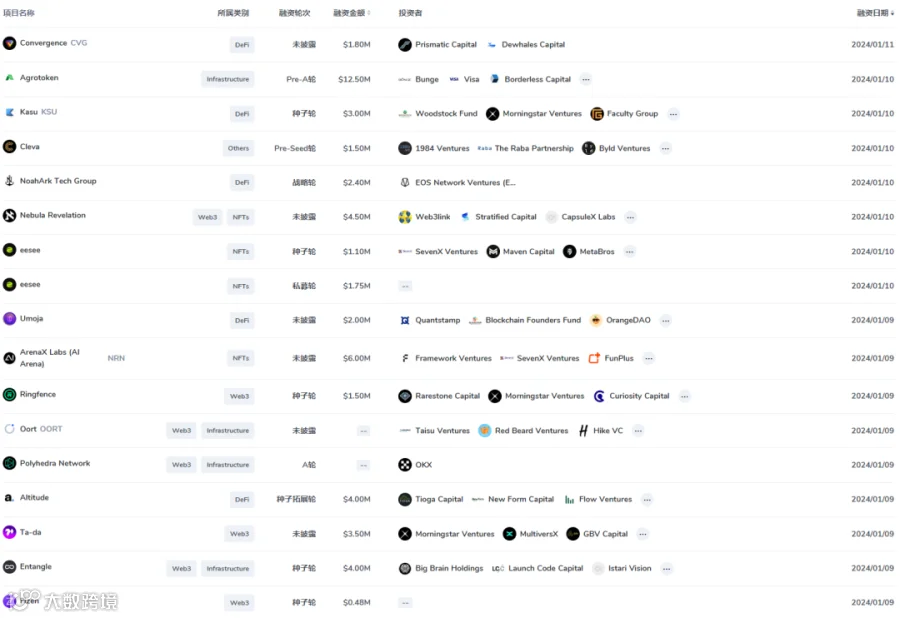 本周一级市场融资数量明显增加,随着BTC现货ETF通过,投资机构开始行业新布局。