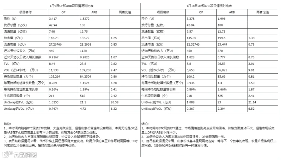 三、Optimism和Arbitrum数据对比分析