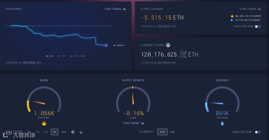 ii. ETH主网结束连续7周通缩后短暂一周呈现通胀,本周继续第二周通缩,7天年通胀率为-0.16%。