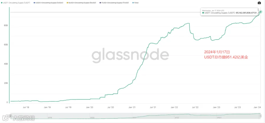 14. Tether稳定币市场份额于2023大幅上涨至71%