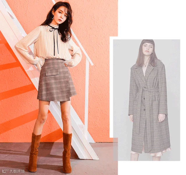 同时也赋予格纹现代的内涵,透露着年轻的气息,现代的剪裁无声中提高整体造型的时尚度。