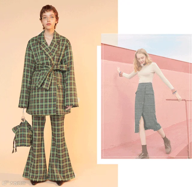 除了有经典的苏格兰、威尔士格纹,还有Gingham方格,千鸟格、棋盘格,从精致的细格纹到显瘦的宽格纹,款式各异且大小不一。
