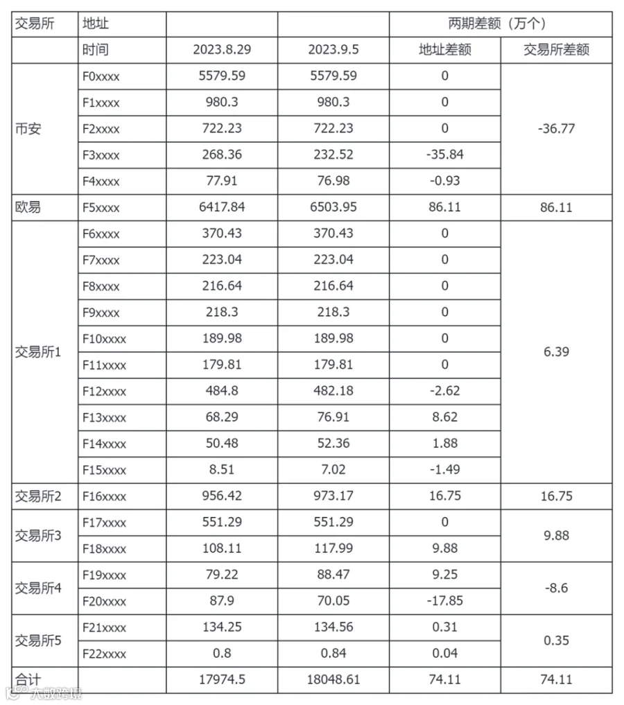 交易所地址:8 月 29 日到 9 月 5 日共流入 74.11 万个,市场恐慌情绪加重,代币流进交易所避险。