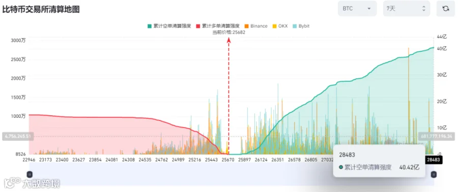 h. 从本周中心化交易所合约交易BTC清算地图来看,随着BTC价格本周的过山车行情后,下方的清算订单不多且分散,上方空单清算订单累计越来越多,到28500的价格已经累计超过40亿美元的清算订单,一旦价格上涨将引起合约市场的大规模清算。去中心市场清算区间变动不大,主要还是集中在ETH1400美金左右。