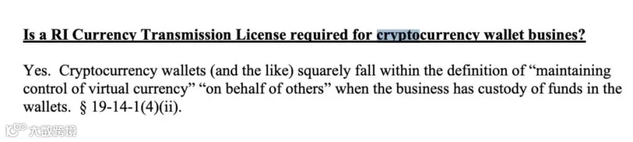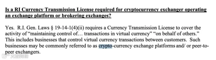 a. 罗德岛州监管机构授予 X 的“货币传输”许可涉及财政资金的划拨和接收,适用于法定货币(美元、欧元等)和加密货币(比特币、以太坊等)。