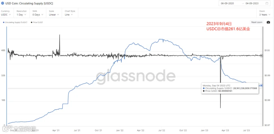 截至8月24日,USDC总流通量为261亿美元,储备量为263亿美元,其中现金19亿美元,Circle Reserve Fund持有244亿美元。