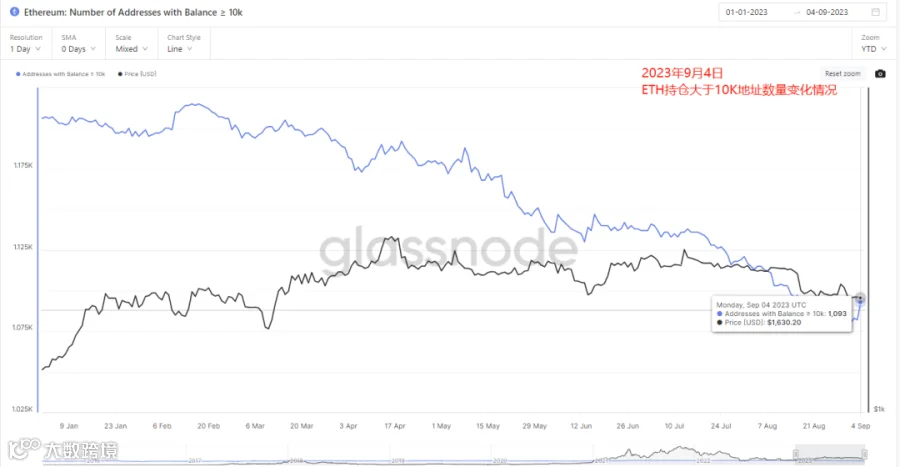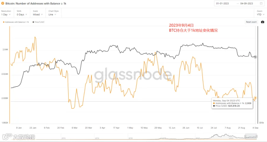 c. 目前来看BTC25000美元左右是很好的支撑位,但并不代表短期不会跌落,如果现在来一个SEC再次以其他理由拒绝灰度的转ETF申请,或者是美联储在九月加息并且提高了点阵图,都有可能会让BTC的价格快速跌破。而反过来也是一样,如果SEC突然宣布通过了灰度或者是贝莱德的BTC现货ETF的申请,或者是美联储直接在九月宣布进入暂停加息,也会对价格产生正面的影响,这是因为目前市场流动性不足,同时BTC和ETH的叙事不依靠本身,而取决于外部消息刺激。