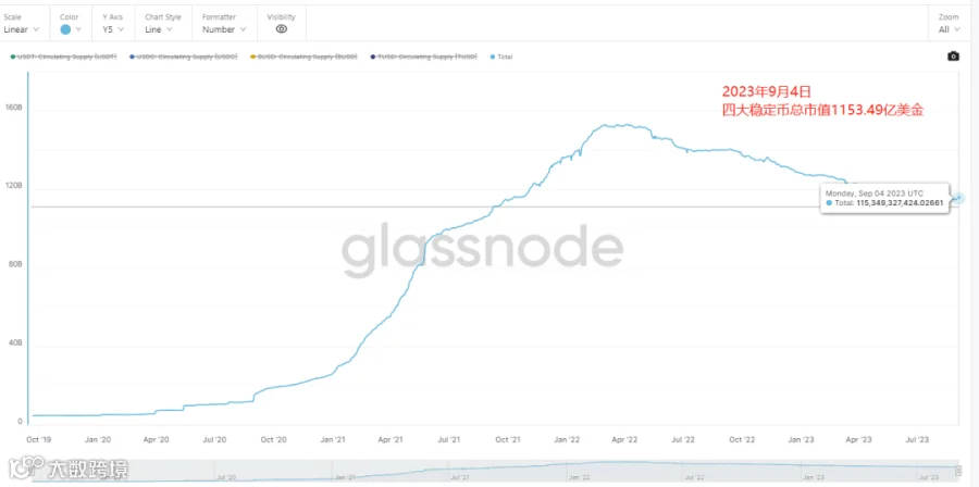 2. 四大稳定币总市值1153.49亿美元,较上周的1149.14亿美金小幅上涨4.53亿。